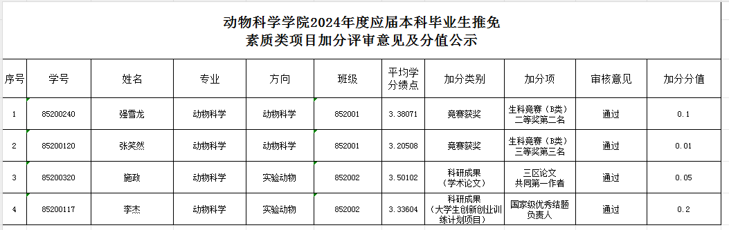 根据《九游体育官网推荐优秀应届本科毕业生免试攻读硕士学位研究生工作管理办法》和《关于开展2024年推荐优秀应届本科毕业生免试攻读研究生素质类项目加分及综合排名工作的通知》要求,学院组织符合要求的学生自愿提交本人相关素质类项目成果材料,同时学院成立专家审核小组,按照年度推免工作实施细则及加分标准,对申请推免资格学生的素质项目进行审核鉴定,并组织相关学生在学院范围内进行公开答辩。现将通过答辩学生名单进行公示。
