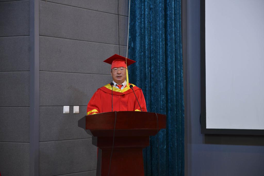 校党委副书记、副校长王利锋教授代表学校向在今年新冠肺炎疫情形势下克服重重困难、顺利完成学业的同学们表示祝贺。同时,王校长充分肯定了学院近年建设发展所取得的成绩,并结合教育部新农科建设规划、我国农业和畜牧业发展以及国家乡村振兴战略,对畜牧学科和所有“动科人”提出了新的更高的希望和要求。王校长为九游体育官网2020届研究生送上了毕业寄语,“希望你们传承黄大年精神,善于应对问题和挑战,敢为人先;发挥理论研究专长,有所作为。今天你们告别了美好大学生活,明天定会开辟精彩人才。祝愿大家青春飞扬,前程锦绣”。王校长的讲话语重心长,赢得了在场师生的热烈掌声。