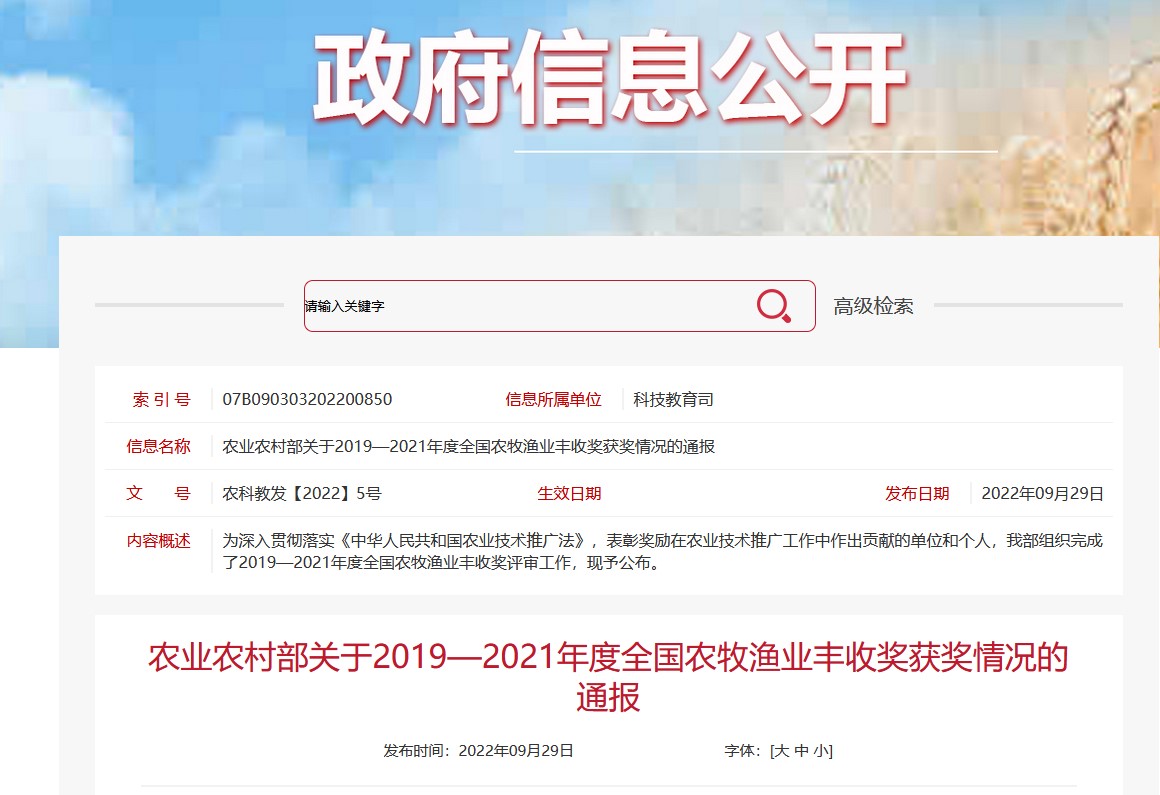 2022年9月29日,农业农村部网站发布《农业农村部关于2019—2021年度全国农牧渔业丰收奖获奖情况的通报》。我校作为第一完成单位申报的“基于数智化云平台的奶牛提质增效关键技术示范与推广”项目喜获农业技术推广成果奖一等奖。