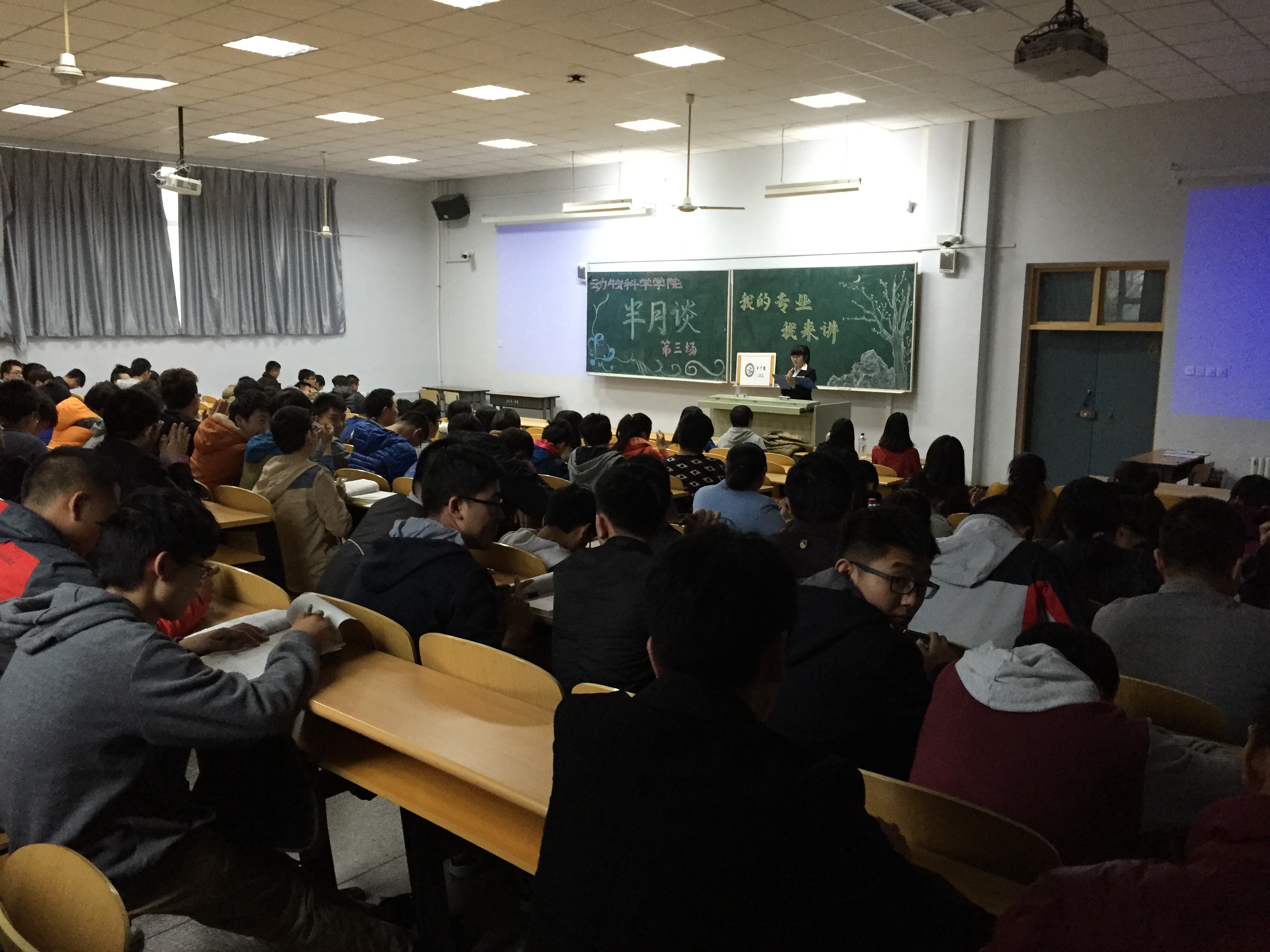 2015年4月2日,周四下午四点,九游体育官网2014级全体本科生齐聚科学讲堂200教室,以热烈的掌声欢迎本期嘉宾2011生物技术(动物)专业的王一名学姐和2012级生物技术(动物)专业的吴志竞学姐参加本次分享会。