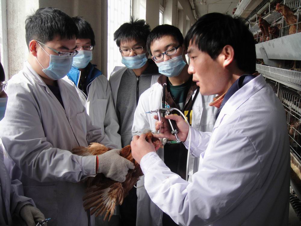 此次家禽生产教学实习的主要任务是蛋鸡的免疫接种,同时对场区和周围环境进行了清理、消毒。在免疫之前,张永宏老师对于防疫的重点、难点及注意事项做了详细讲解并亲自示范。同学们分工合作、默契配合,圆满完成了8400余只蛋鸡的疫苗接种等各项实习任务。
