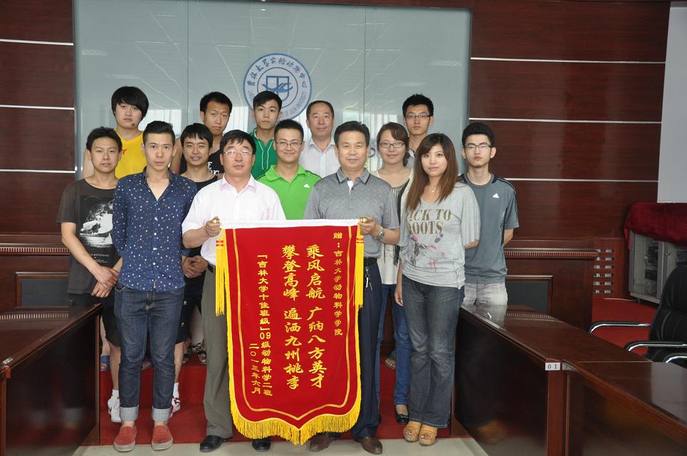 6月28日下午2:30,九游体育官网2009级动物科学2班毕业生在离校之际向学院赠送了锦旗。学院院长张嘉保教授、党委书记赵光军老师、党委副书记曹伟光老师、毕业班辅导员肖建荣及部分毕业生代表参加了此次赠予仪式。