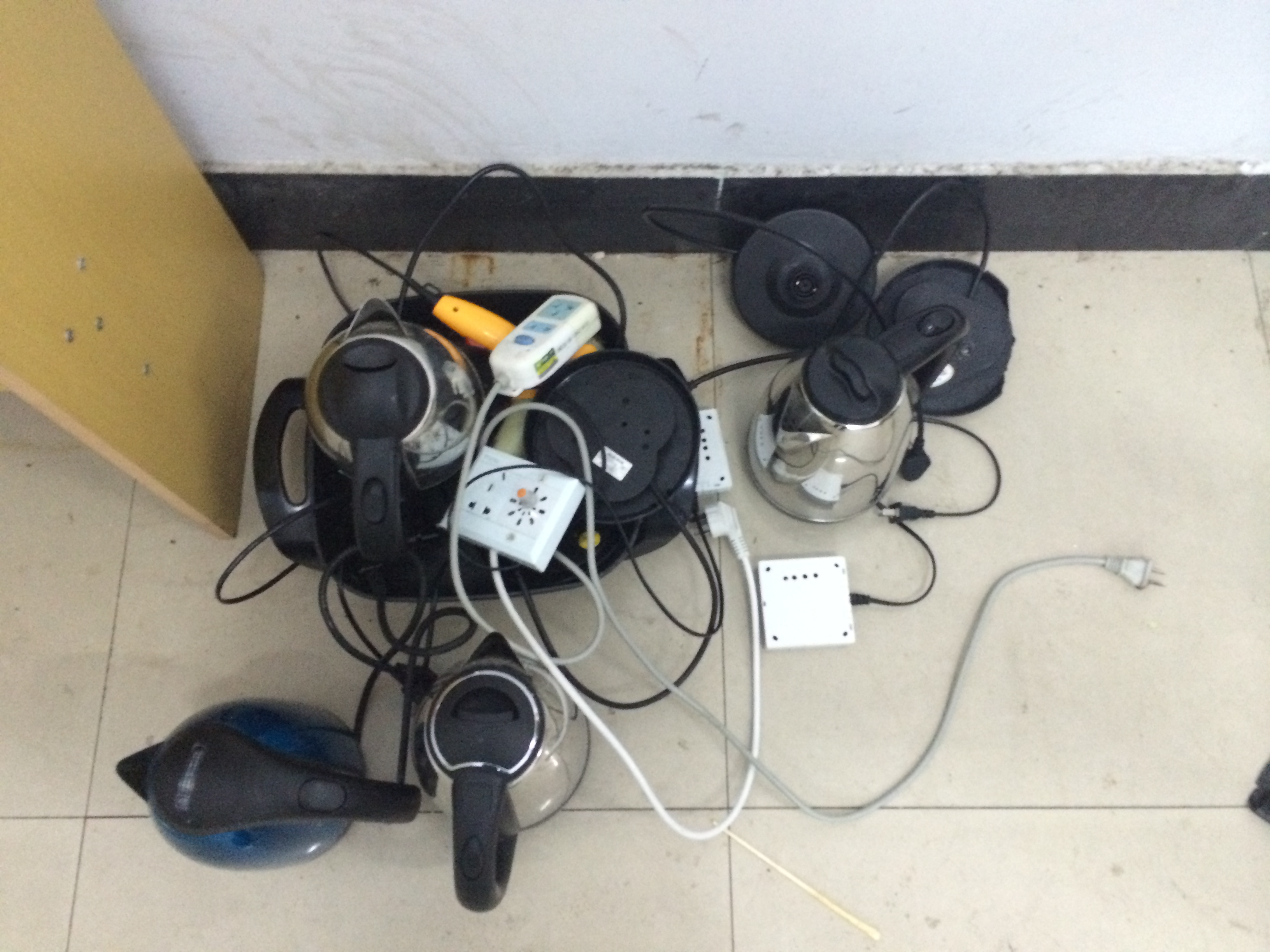 从检查结果来看,大部分使用违规电器的为高年级同学,电水壶为最主要的安全隐患,除此之外还有变压插排,电热锅,电吹风等。查寝工作结束后,安保部部长将查寝情况汇总整理成表格并上报给学院。