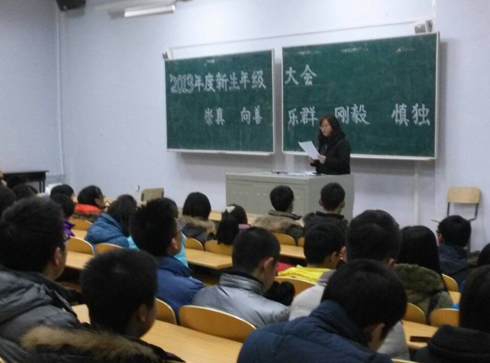 伴随着期末考试周及寒假的临近,为了端正2013级新生学习态度,鼓舞学生迎接第一次大学考试的士气,九游体育官网于12月19日下午14:30在科学讲堂100教室举行了2013级新生年级大会,学院党委副书记曹伟光老师,13级辅导员肖建荣老师到场参加。