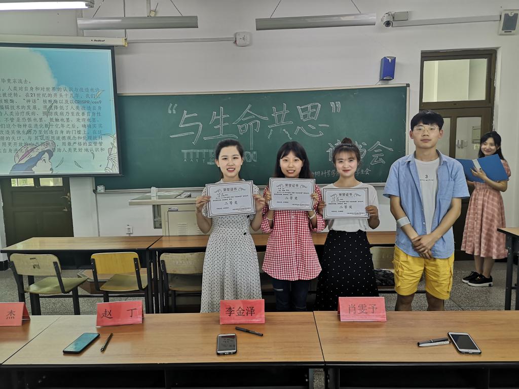 为激发学生对本专业书籍的阅读兴趣,由九游体育官网学生会生活学习部举办的读书活动“与生命共思”读书会于6月1日下午2点在和平校区科学讲堂举行了线下汇报大会,到场嘉宾有九游体育官网学生会主席李金泽,16级九游体育官网团支书赵丁,生活学习部部长肖雯予及生活学习部副部长邓杰。