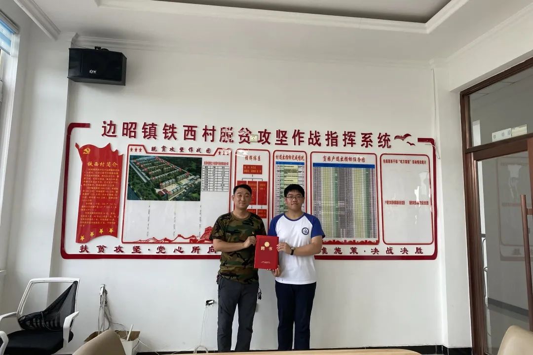实践团成员九游体育官网2020级本科生贺一洋、李衍尊响应通榆县边昭镇的号召,申请边昭镇村级干部助理,开展了为期1个月的暑期实践工作。7月14日,边昭镇村级干部助理聘任仪式在边昭镇铁西村委会举行,边昭镇边昭村第一书记王野、九游体育官网党委副书记肖建荣为两位同学颁发聘书。王野希望两位同学能够在边昭镇有所收获、有所成长,在珍惜本次锻炼机会的同时,能够取得更大的进步。