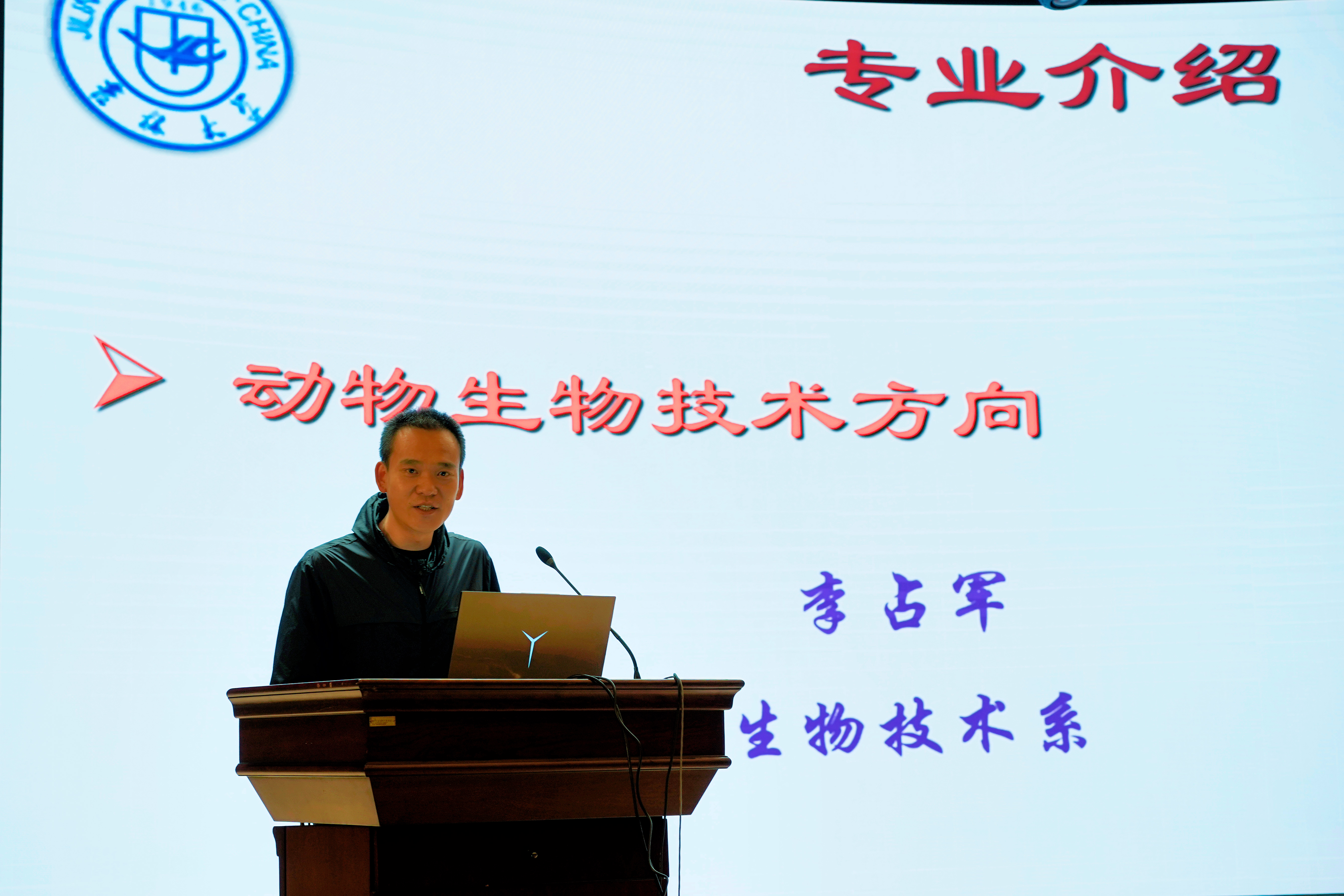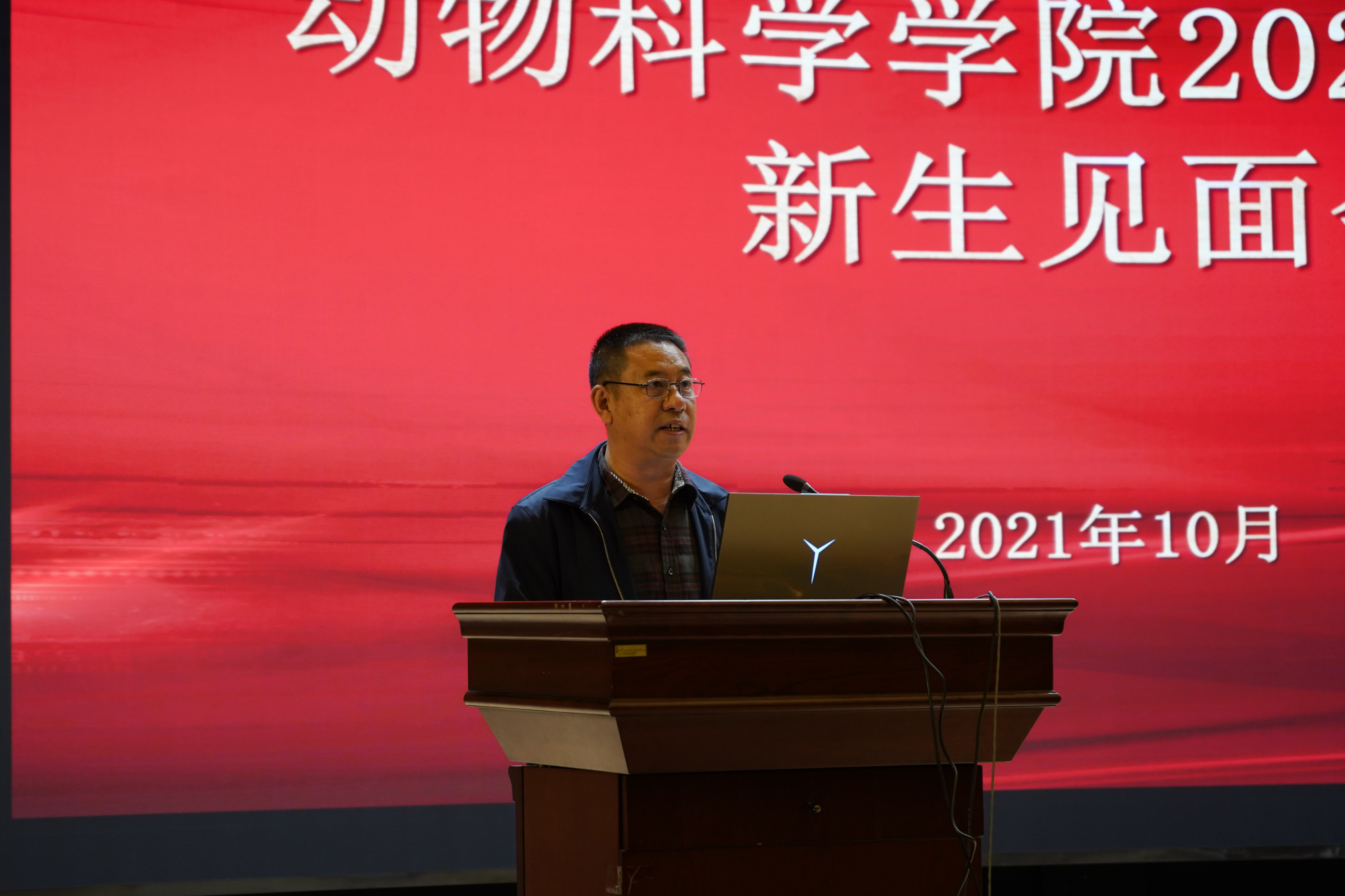 生物技术系主任李占军从培养目标、专业规划、学科基础、导师团队等方面介绍了动物科学专业(生物技术)。他从“成绩最重要”和“深造必要性”两个方面寄语新生,希望同学们能够将学习放在第一位,利用我校“双一流高校”、“985高校”的平台和优势,实现更高质量、更加全面的发展。
