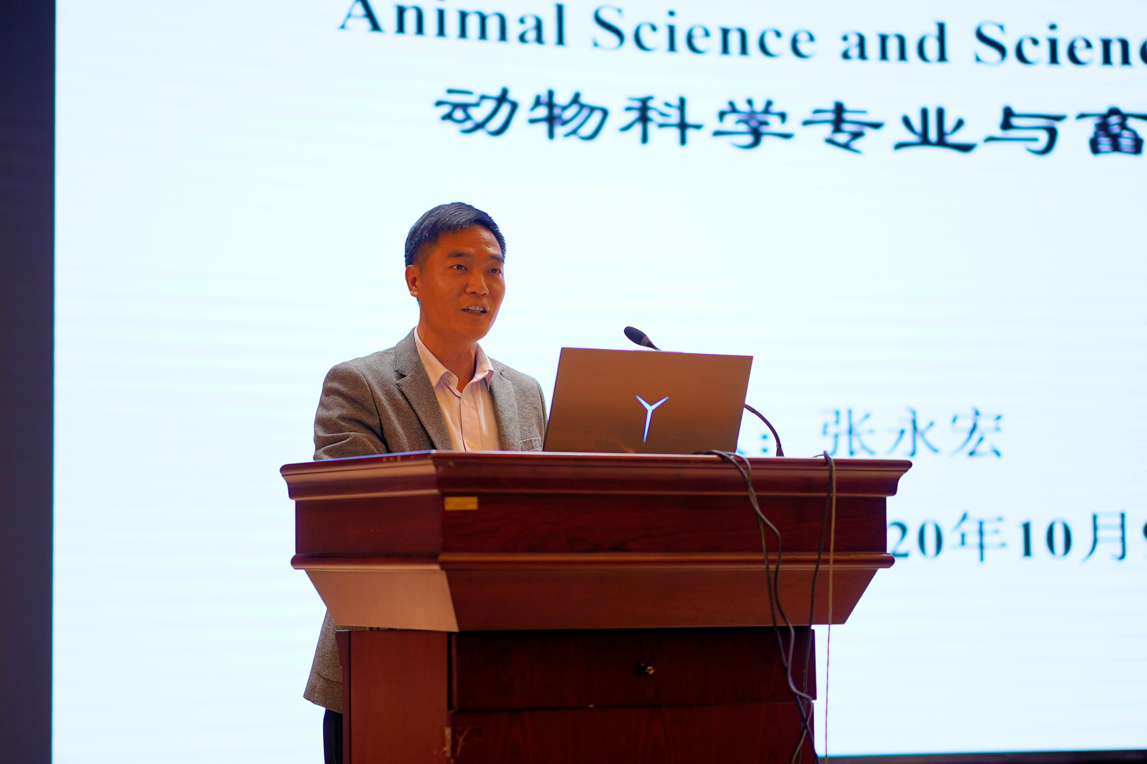 动物科学系主任张永宏以动物科学专业的基本概念为切入点,从学科历史、培养目标、就业方向、大学生创新实验、教学实习基地建设等方面介绍了专业概况。