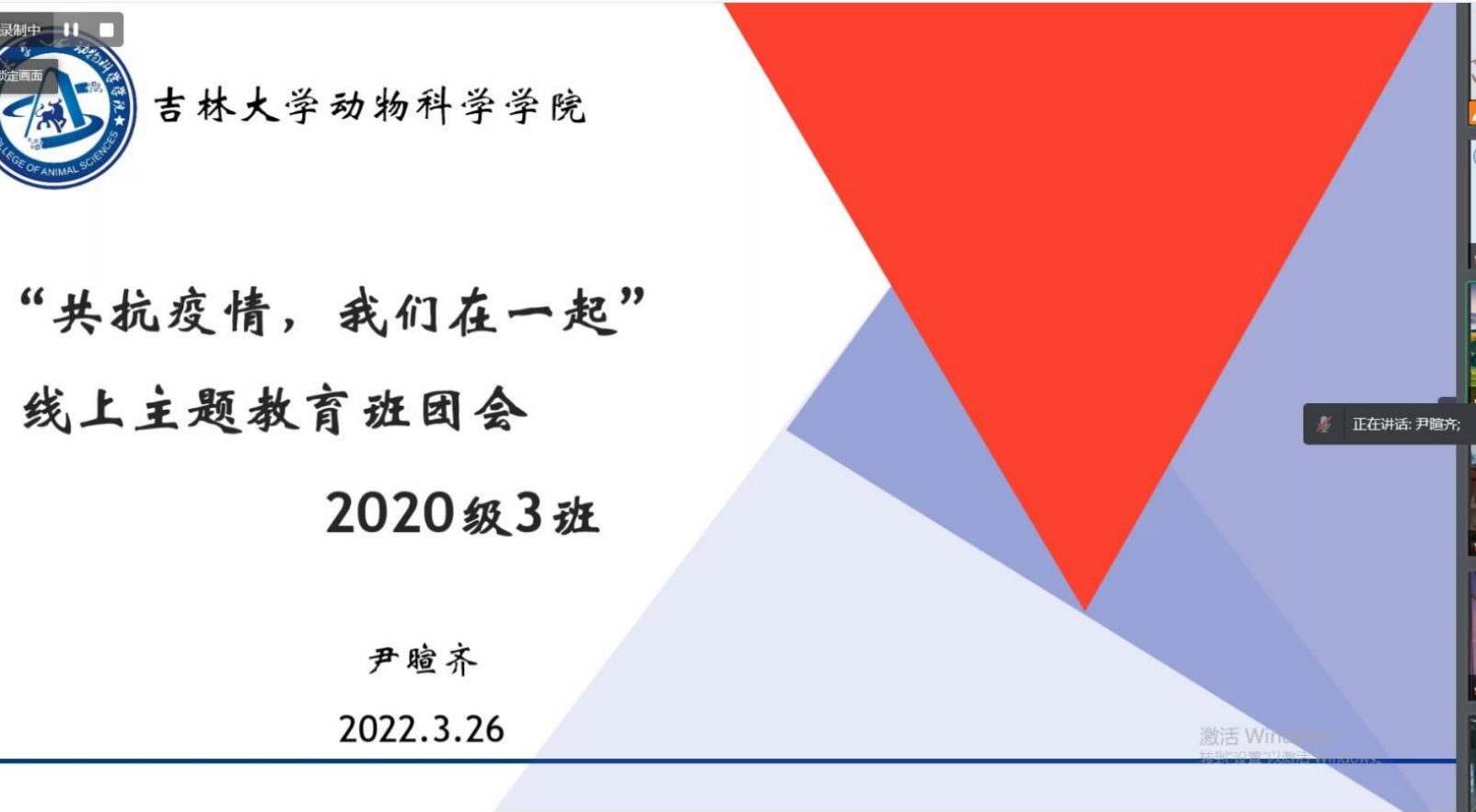 连日来,吉林省疫情形势严峻,多地本土确诊病例和无症状感染者数量持续增加。为明确疫情防控期间基本政策和推进思政教育的线上开展,九游体育官网2020级3班于3月16日晚召开“共抗疫情,我们在一起”线上主题教育班团会。班会由辅导员尹暄齐主持,学院副院长袁宝、班主任丁瑜、2018级刘鑫苗同学以及三班全体同学参加会议。