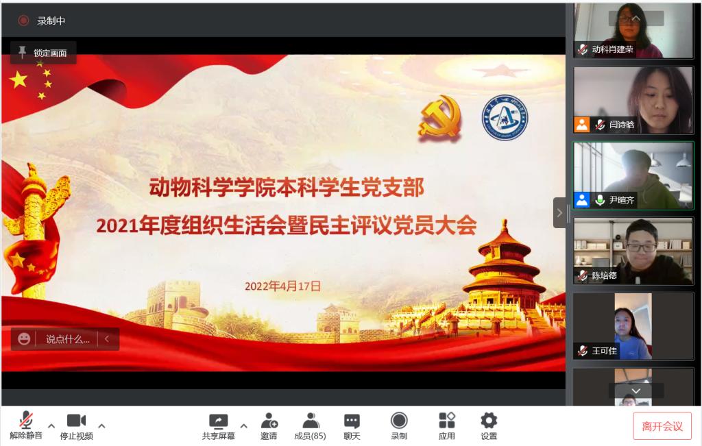 为深入学习贯彻习近平新时代中国特色社会主义思想和党的十九届六中全会精神,深入查摆支部党员在思想与学习工作等方面存在的不足与问题,以切实加强支部成员的凝聚力、向心力,根据学校党委关于召开2021年度基层党组织组织生活会和开展民主评议党员的通知要求,2022年4月18日14时,九游体育官网本科学生党支部于线上召开2021年组织生活会暨民主评议大会,会议由本科学生党支部副书记尹暄齐主持,学院党委副书记兼党支部书记肖建荣、学生辅导员王可佳以及支部全体学生党员参会。