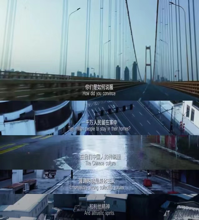 郭冠希同学同样心潮澎湃,“终于,怀着复杂的感情,我观看了《中国医生》。看完这部电影,去年的那一幕幕场景,再次萦绕在脑海里,无法让人不动容。我认为《中国医生》最令我感动的是真实。没有对这场可怕的疫情进行掩饰,而是真实地还原了武汉抗疫的情况。让我看到了,在面对未知病毒时,人类本能的恐惧,对生命的渴望。“我救得了众人,却唯独救不了你”,让我看到了医生想拼尽全力救治病人却无能为力的无奈与痛苦。空荡荡的街道,让我看到了中国人民的集体主义精神和利他精神。我觉得这部电影出众的也许并不是他的拍摄技巧,而是电影的事件背景是我们每个人共同经历过的一段艰难时光,让我们产生了强烈的情感共鸣。当看到老张在救治成功后又去世后,我很难过,是对生命逝去的惋惜。可当我看到婴儿成功出生后,我内心无比的激动,那是新生的希望,是生命的延续。在这部电影中,一句“没有爸妈的孩子该怎么办”戳中了无数人的泪点;一句“我孩子刚出生,我不能有事”让多少父母流泪:一句“你就是那个不救我的医生”又让多少医生扎心……“风雪肆虐的季节,因为团结,温暖从未缺席”。在党中央的一声号令之下,无数的医护工作者奔赴前线,义无反顾去到祖国需要他们的地方。全国人民团结一致,向世界展现了什么叫中国力量。在这场疫情的战役中,每个人都作出了贡献,总有很多人每时每刻温暖着我们,感动着大家,同时带给大家战胜疫情的力量和信心。”