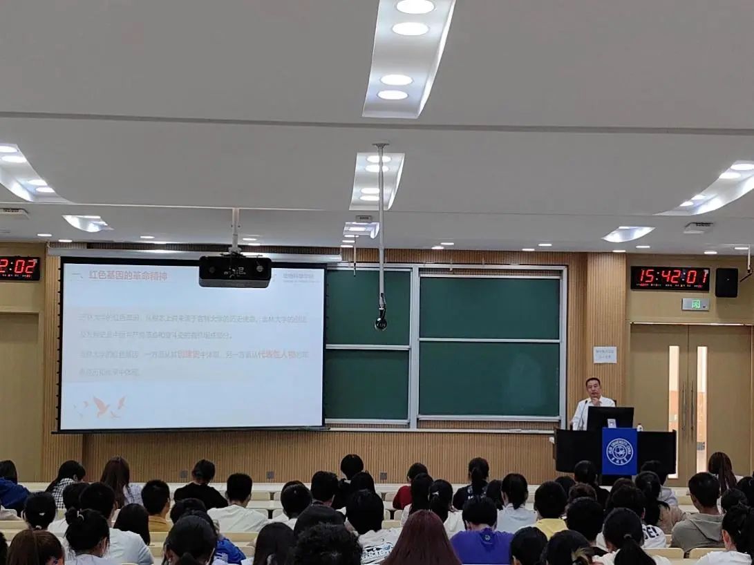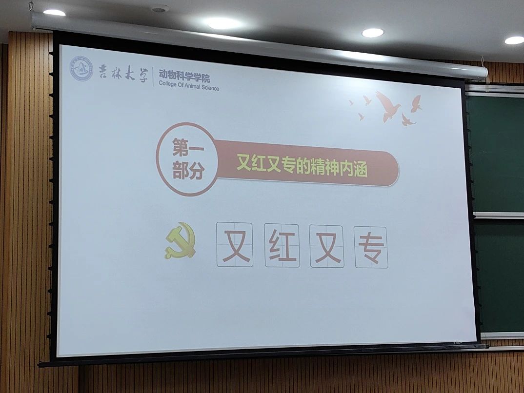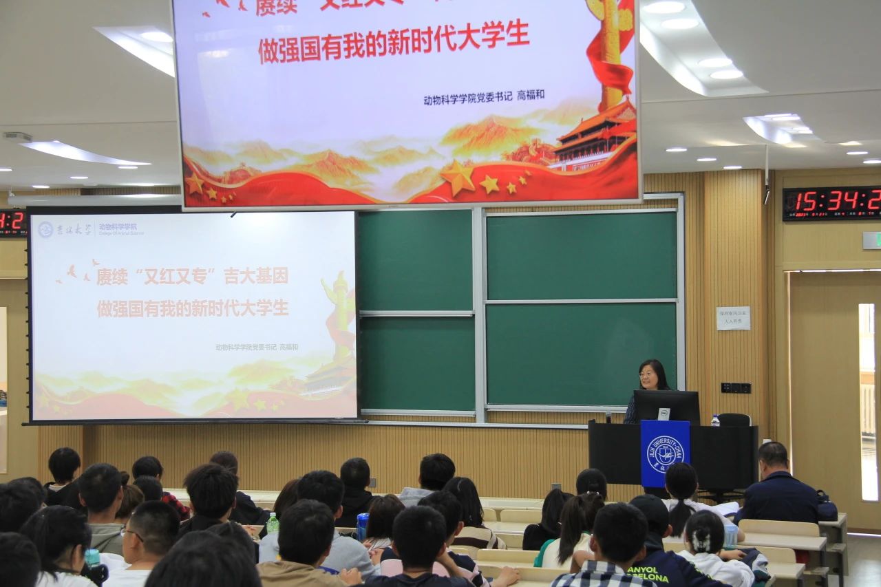高福和以“赓续‘又红又专’吉大基因,做强国有我的新时代大学生”为题,围绕“又红又专”的精神内涵、如何弘扬“又红又专”精神等两个方面讲授第一课。他首先从红色基因的革命精神、至诚报国的黄大年精神、艰苦创业的北上精神等三个角度阐释了“又红又专”的精神内涵,又介绍了动物科学专业的基本情况和优秀校友,鼓励同学们要树立知农爱农、学农为农、强农兴农的意识与使命。