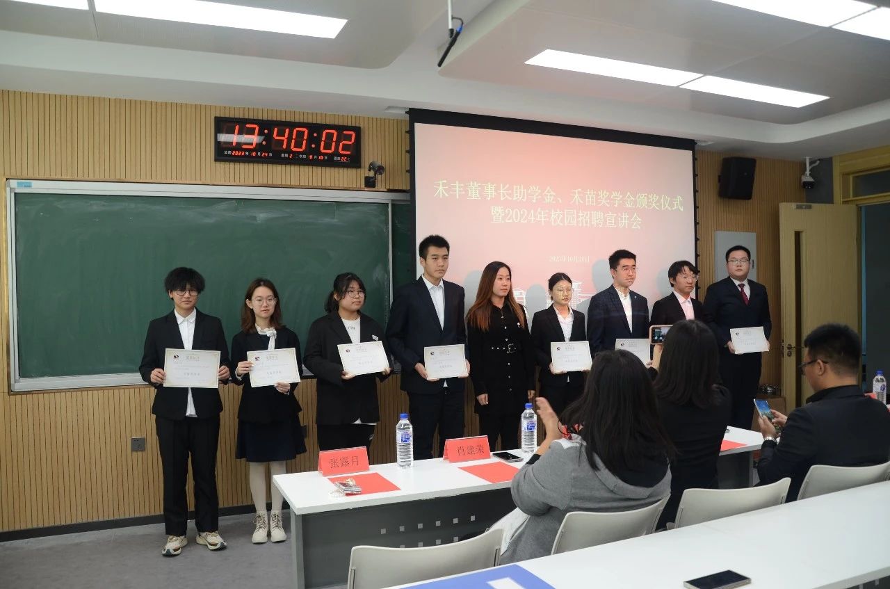 情系高校学子,聚焦农科人才,成就青年梦想。2023年10月24日下午13:30,“禾丰董事长助学金”“禾苗奖学金”颁发仪式暨2024年校园招聘会在和平校区科学讲堂201教室举行。禾丰牧业辽宁区招聘培训COE杜娟,辽宁区沈禾猪料事业线销售总经理COE刘建、HR张露月,九游体育官网党委副书记肖建荣、辅导员王可佳,动物医学学院辅导员李娜、祁庆恢参加活动。