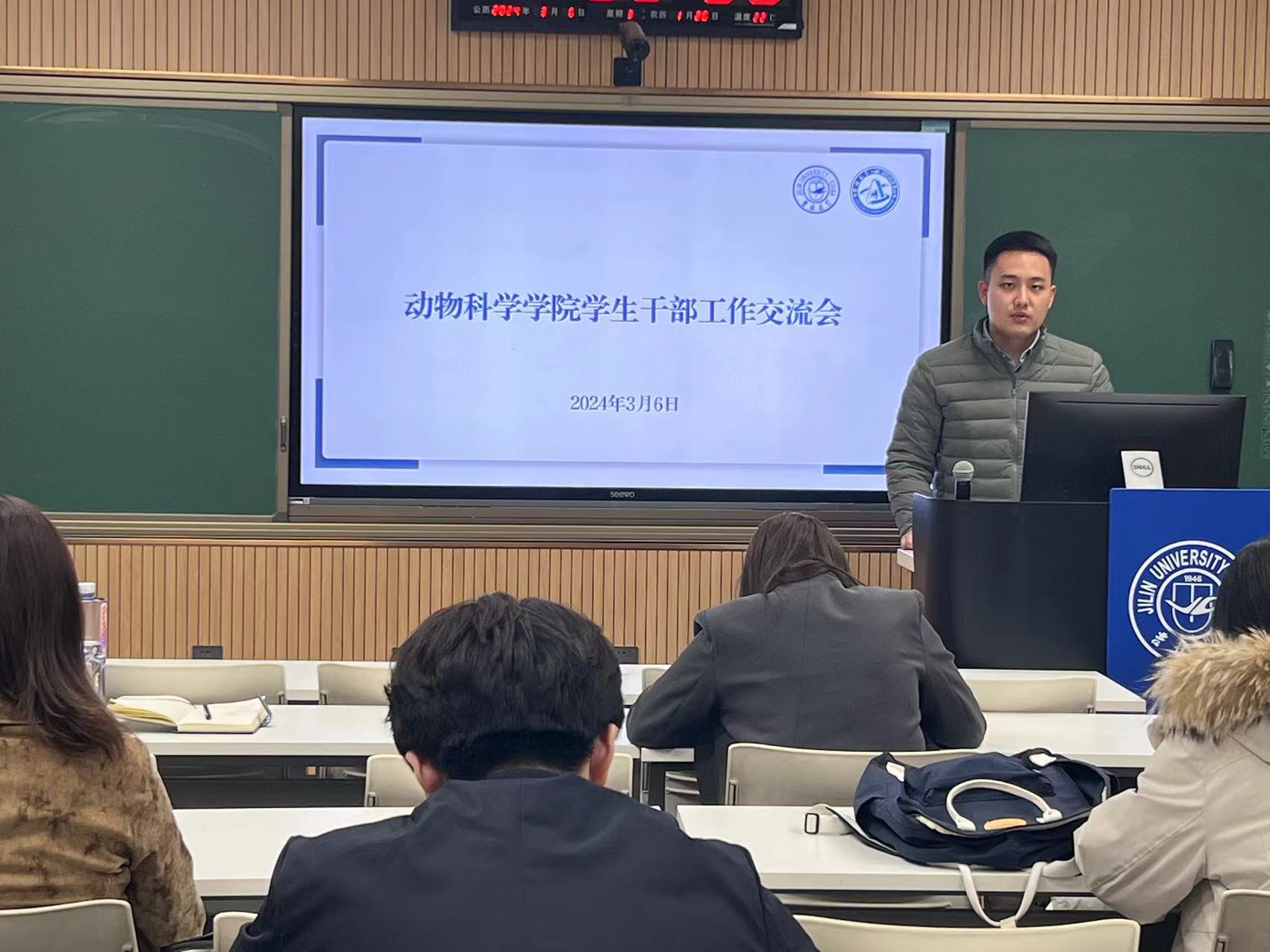 为推动新学期各项工作顺利开展,进一步推进学生干部队伍建设,加强各班级之间的沟通交流,九游体育官网于3月6日晚在和平校区科学讲堂召开本学期第一次学生干部工作交流会,2021级、2022级各班级班长、团支书、副班长参加此次会议。会议由辅导员王可佳主持。
