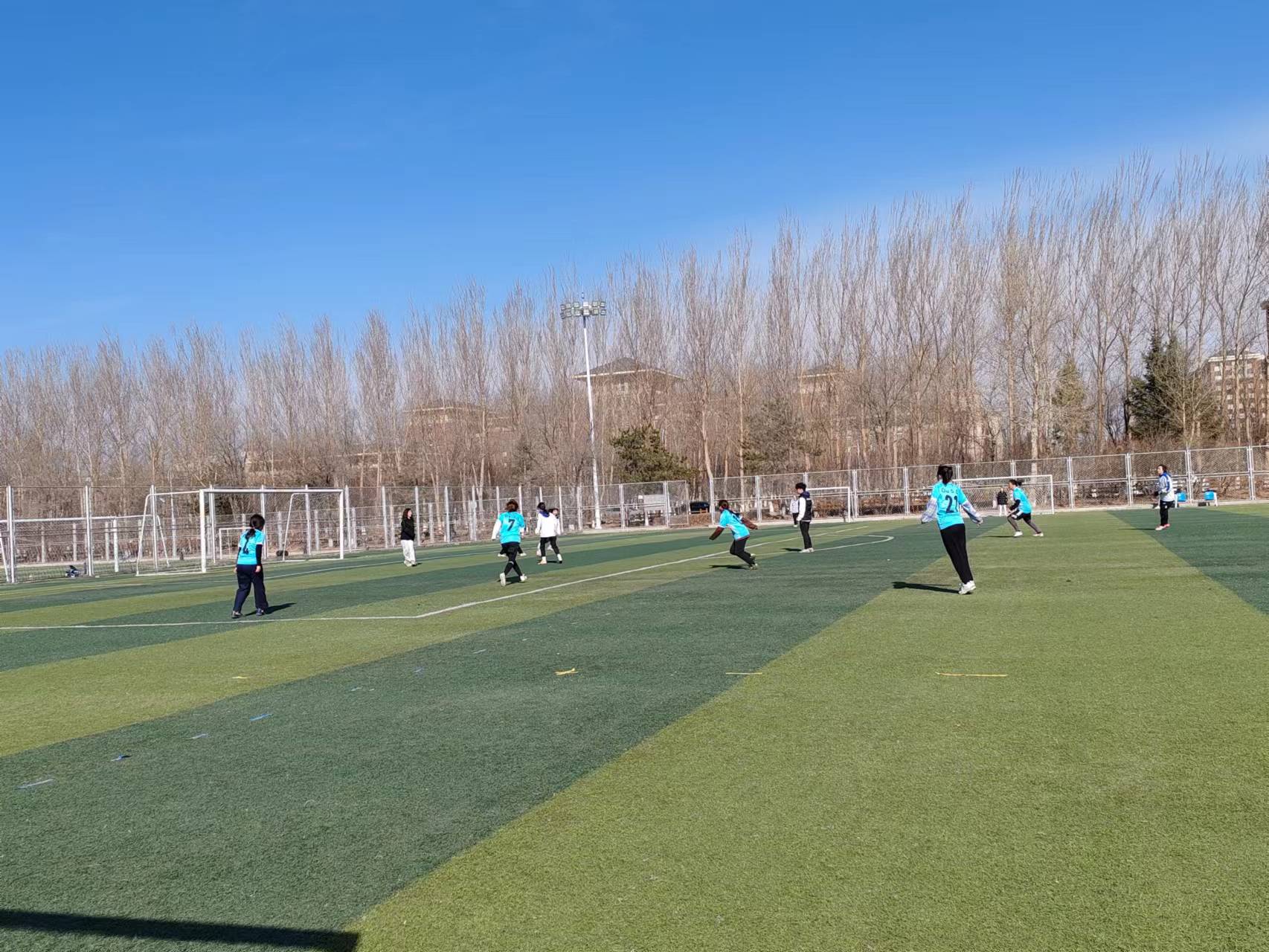 比赛于2024年3月30日上午8:30正式开始,动科女足在与对方学院实力悬殊的情况下,依旧团结一心,顽强拼搏,在球场上挥洒汗水。初春清晨的风仍然凉爽,却敌不过场上她们矫健的身姿和场下老师同学们热情的呐喊。