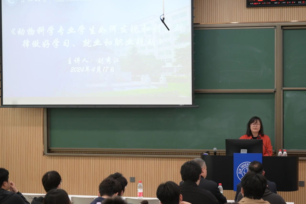 刘秀江以“文化的力量”为题,对动物科学专业学生“如何发现和利用规律做好学习、就业和职业规划”进行了类比分享。他全程引用三国中的人物故事,由古及今,以古鉴今,他指出大学是充满选择和挑战的阶段,极易产生迷茫和焦虑情绪,作为青年学生要饱有“求实创新”的学习韧劲,以扎实的专业基础探索完善的科研内容,要有好奇心,知学好学,学以致用,为现代畜牧业发展解决急难愁盼的实际问题;作为职场青年要以“事业之心”敬畏工作,激发成长内驱力,注重本领提升,抓住机会、广泛训练职场竞争软实力;作为双一流高校农科学子要树立专业自信、行业自信和文化自信,广阔的农牧天地和中国农业的现代化进程亟需更多的青年学生助力攻坚。最后,他借用九游体育官网“求实创新,励志图强”的校训,鼓励同学们要珍惜时光,脚踏实地,追求卓越。