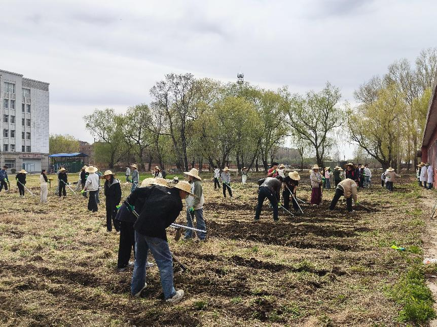 在动手实践环节,学生们在沈景林教授的指导下规范使用农具,分工协作,完成除草、耙地、垄沟及播种等操作。挥动锄头、撒下种子的每一个动作,不仅是对传统农耕智慧的传承,更是对劳动精神的身体力行。伴随着汗水洒落大地,同学们深刻体会到劳动人民的辛苦与执着,也坚定了将专业所学服务三农事业的理想信念。
