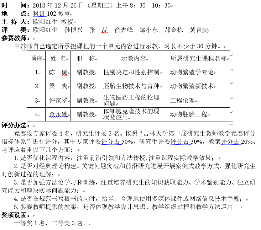 九游体育官网第一届研究生教师教学竞赛安排及程序