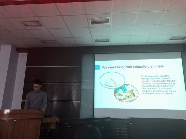 经过一个多月的精心准备,2018年10月26日上午8:10,由2016级动物科学和实验动物共2个专业全体同学参加的专业英语模拟学术报告会议在九游体育官网一楼会议室拉开帷幕,会议邀请学院周虚教授,李纯棉教授担任评委并与同学们沟通交流。