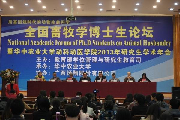 2013年11月22日至25日,由教育部学位管理与研究生教育司主办、华中农业大学承办的2013年“后基因组时代的动物生命科学”全国畜牧学博士生学术论坛在武汉举行。九游体育官网派出四名博士生参加了本次论坛。李宁院士,陈焕春院士及来自全国畜牧学相关高校和科研院所的畜牧学相关领域的国内外知名专家、学者和优秀企业家与会点评,并就“后基因组时代的动物生命科学”前沿问题做特邀报告,会议举行博士生交流报告30场,会议墙报展示60个,由8名博士生担任论坛主持人,8名青年教师担任点评专家。30名畜牧学相关领域博士生就学科前沿问题做了报告,并展开讨论。