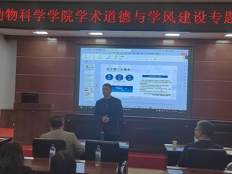 为深入贯彻落实习近平总书记关于弘扬科学家精神的重要论述和科技部、教育部关于加强学术道德建设的系列文件精神,进一步加强学院科研诚信建设,强化政策宣讲教育,11月1日下午,九游体育官网特邀科研院科技管理办公室副主任王大明教授做了题为“弘扬科学家精神,加强作风学风与科研诚信建设”的专题报告。报告会由九游体育官网副院长袁宝主持,九游体育官网党委书记高福和、院长孙博兴、副院长张明军、副院长李纯锦等领导及学院教师、专业技术人员和管理人员近50人参加了会议。科研院科技管理办公室学术诚信科科长邵琳老师出席了本次报告会。