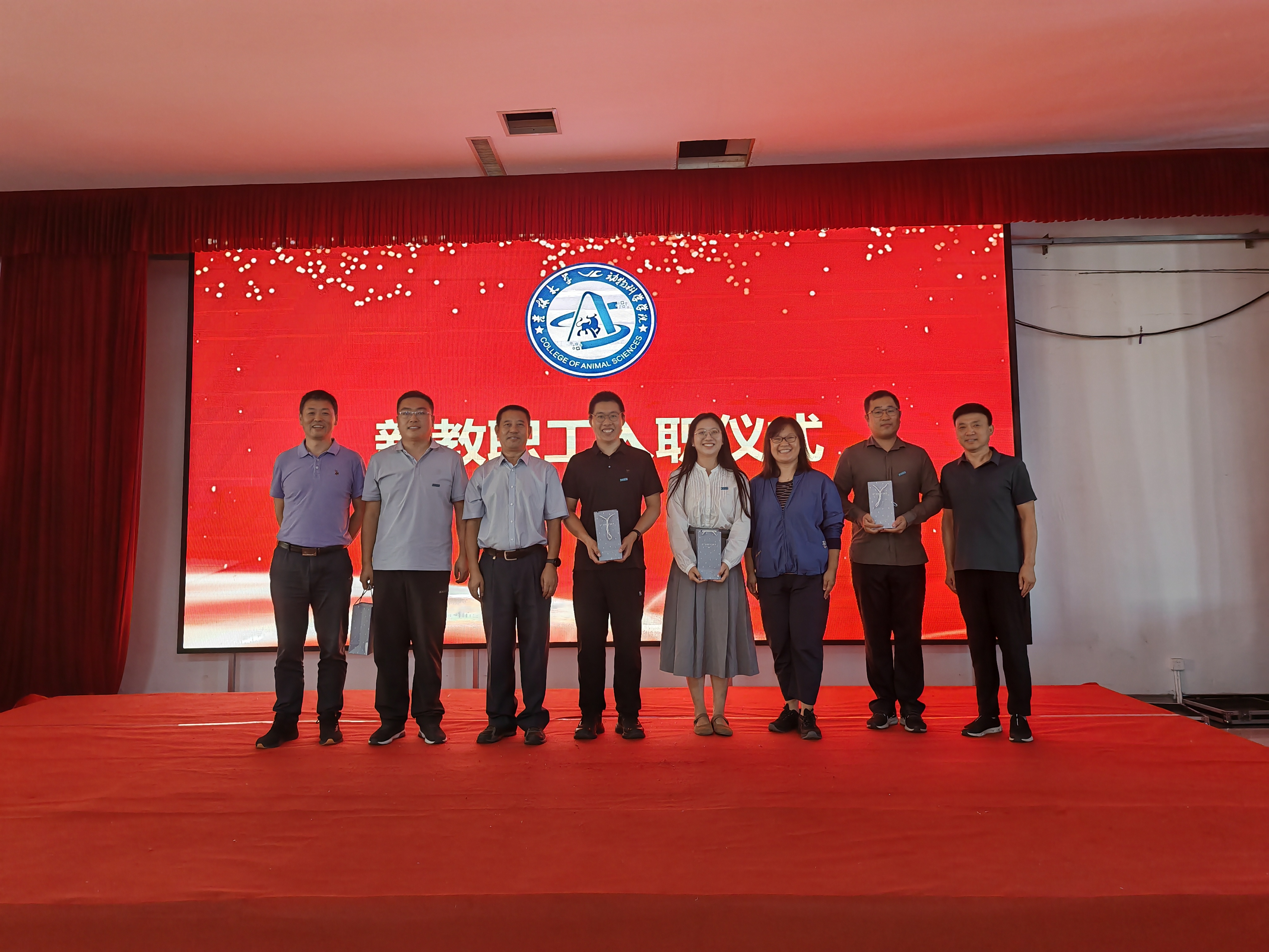 随后,举行新教职工入职仪式和教师荣休仪式。班子成员为2024年新入职教职工代表佩戴九游体育官网校徽并发放学院纪念品,党委书记高福和为退休教师沈景林教授颁发荣休证书,青年教工代表杨琳为沈景林教授敬献鲜花并合影留念。沈景林教授在退休感言中回顾自己32年的从教经历,用3个感谢,3个不舍和4个祝愿倾诉了自己对学院、对师生和对畜牧学科的深切情感,在鲜花和掌声中正式告别讲台,迈向人生新的篇章。