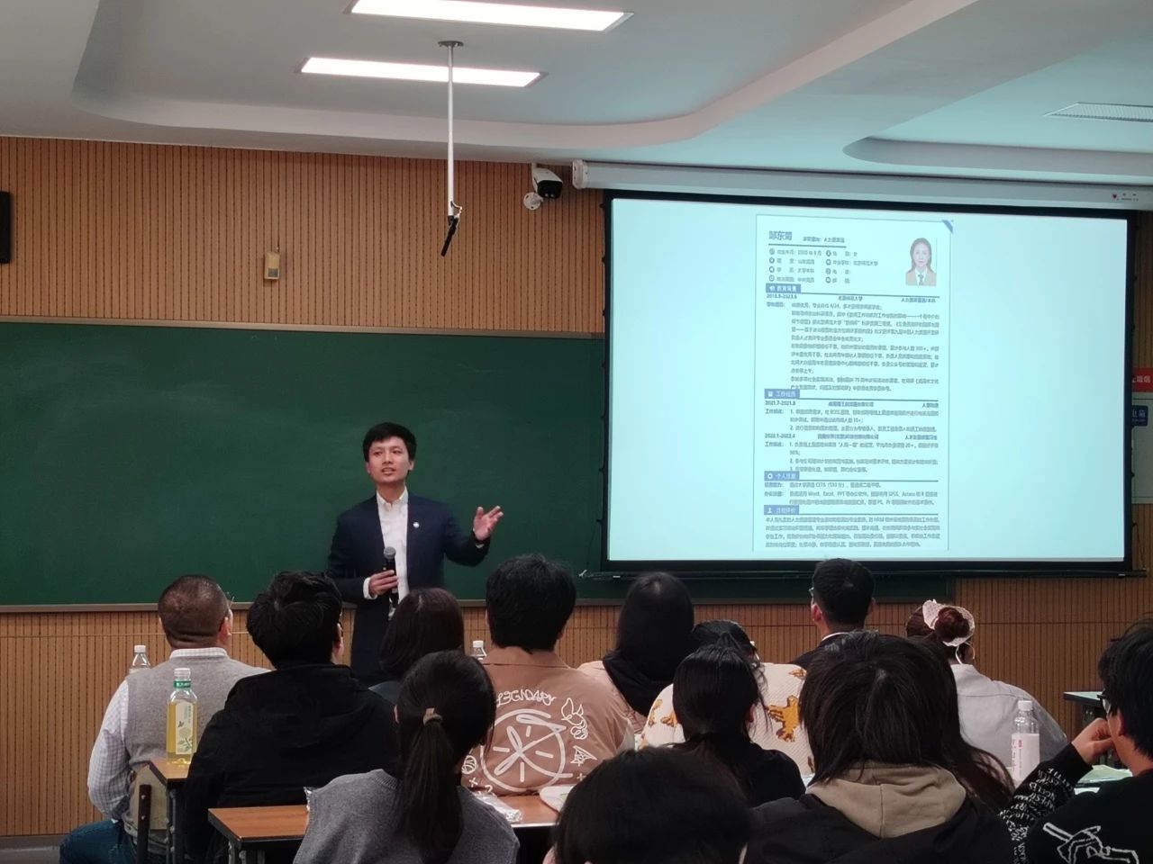张鑫铸介绍了中粮集团为培养肉食核心人才开展的管培生项目,讲解了中粮集团的业务范围与市场影响力,也为同学们分享了企业的产能布局以及本次招聘岗位的具体情况。提问环节中,许多同学积极参与互动交流,咨询有关企业发展及岗位前景等相关问题,张鑫铸逐一做出解答。宣讲结束后,在场学生积极投递简历,现场氛围活跃。