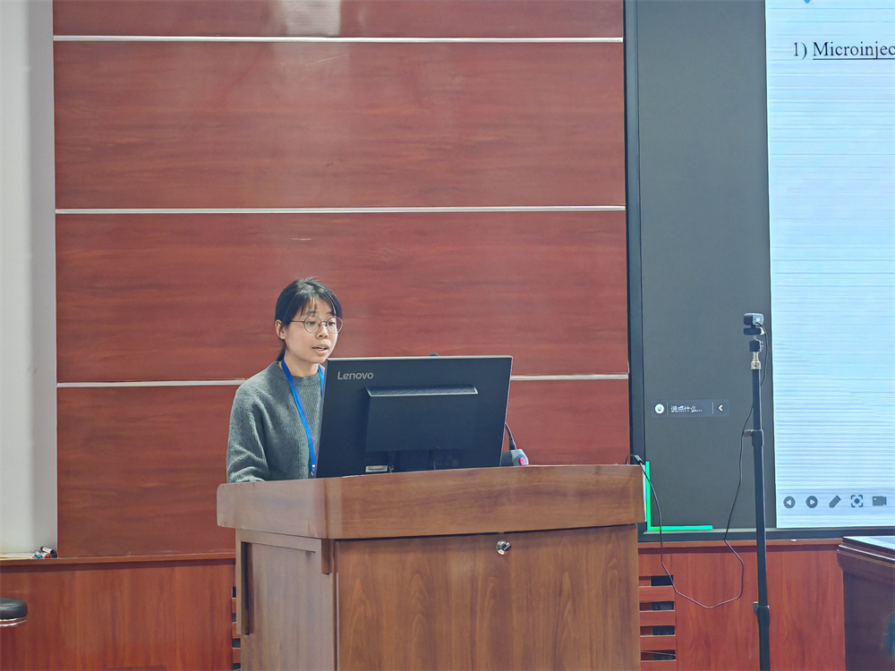 随后,6位青年学者依次作专题报告。来自澳大利亚莫纳什大学的武玉钦博士以《胰高血糖素的代谢调控作用》为题,介绍了胰高血糖素新靶点SEC22B及其在胰高血糖素调控过程中的关键作用。日本德岛大学的林青怡博士以《基于新型转染方法的猪胚胎基因编辑技术开发》为题,分享了转染技术可以实现对猪胚胎进行基因编辑。在《亲缘关系动态及其社会生活史的进化意义》中,英国剑桥大学的何鹏博士以虎鲸和人类为对象,介绍了个体间亲缘关系如何改变社会结构,进而影响地区生态。加拿大戴尔豪斯大学的胡国煜博士、比利时列日大学的陈焱森博士、英国苏格兰农业大学的李冰洁博士分别以《美国水貂抗阿留申病能力的基因组分析》、《高氮利用效率和低碳排放奶牛的遗传育种》和《英国动物遗传育种的研究和应用(2024)》为题,对美国水貂和奶牛复杂性状的解析,关键位点的挖掘和产业化应用进行了介绍。交流期间,学院师生积极提问,青年学者逐一进行回答。