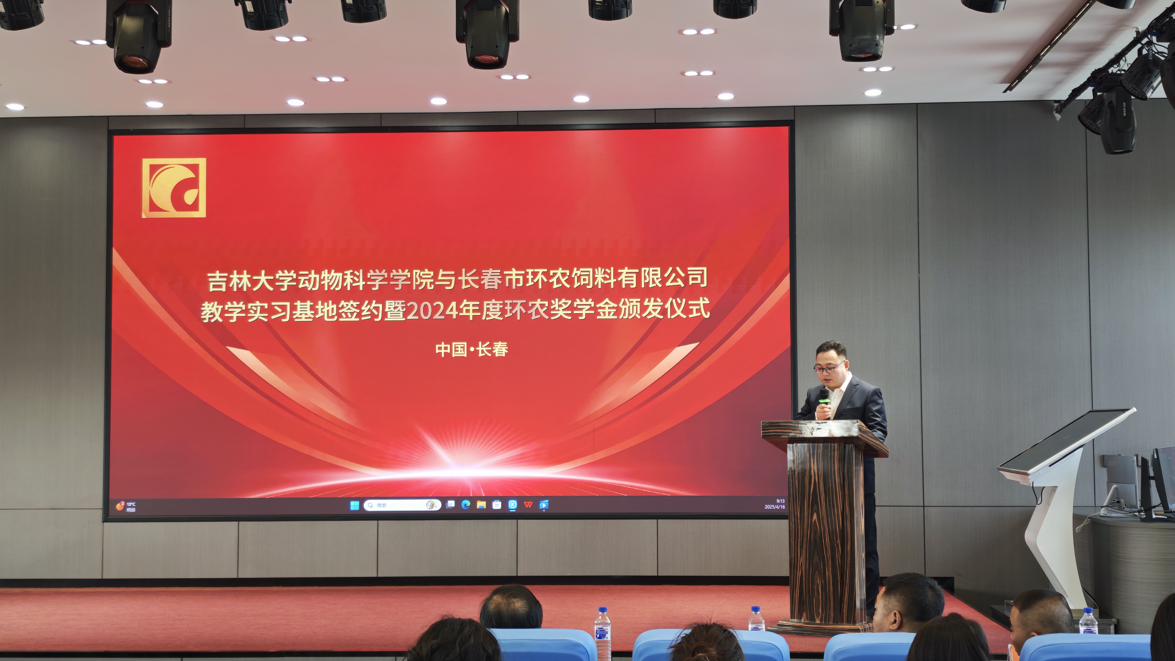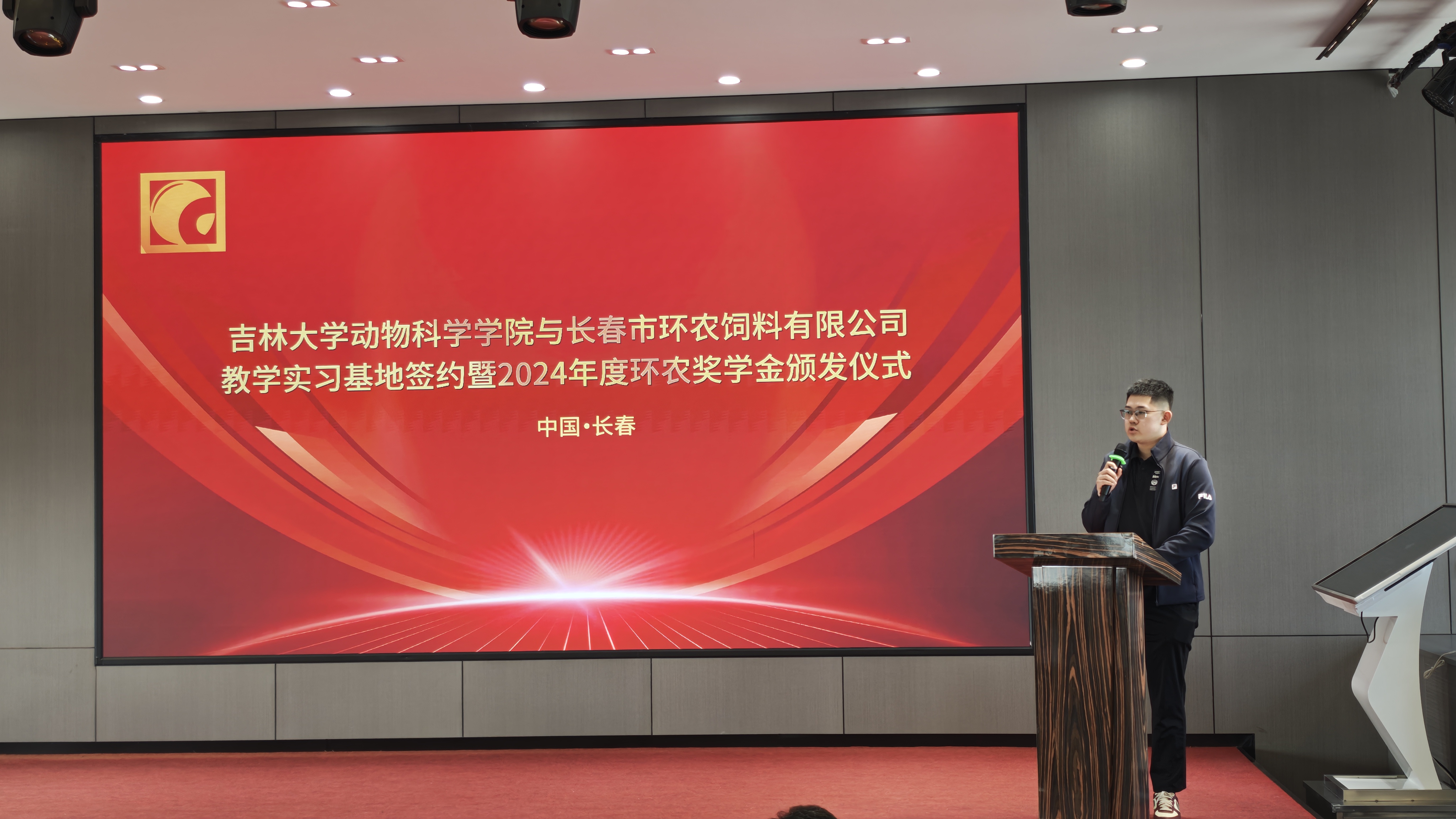 企业于2024年设立“环农奖学金”,旨在奖励优秀学生,激励更多动科学子投身畜牧行业。在奖学金颁发环节,校企双方共同为获奖学生颁发证书。2022级学生刘达申作为获奖代表发言,感谢企业的资助与学院的培养,表示将扎根畜牧行业,以所学知识服务产业发展。