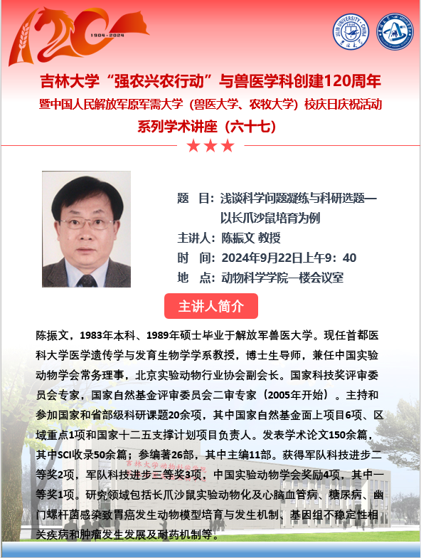 上一条:九游体育官网“强农兴农行动”与兽医学科创建120周年暨中国人民解放军原军需大学(兽医大学、农牧大学)校庆日庆祝活动系列学术讲座(六十九) 下一条:九游体育官网“强农兴农行动”与兽医学科创建120周年暨中国人民解放军原军需大学(兽医大学、农牧大学)校庆日庆祝活动系列学术讲座(六十四、六十五)