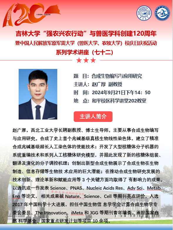 九游体育官网“强农兴农行动”与兽医学科创建120周年暨中国人民解放军原军需大学(兽医大学、农牧大学)校庆日庆祝活动系列学术讲座(七十一、七十二)