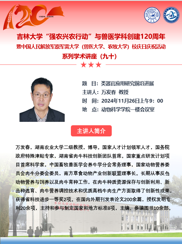 上一条:九游体育官网“强农兴农行动”与兽医学科创建120周年暨中国人民解放军原军需大学(兽医大学、农牧大学)校庆日庆祝活动系列学术讲座(九十一) 下一条:九游体育官网“强农兴农行动”与兽医学科创建120周年暨中国人民解放军原军需大学(兽医大学、农牧大学)校庆日庆祝活动系列学术讲座(八十六)