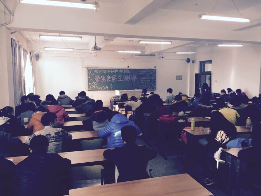 本次的民主测评采用的是匿名制,并且所有学生会成员的打分是具有同等效力的,这充分体现了本次测评的公平与民主。25日中午12点半,测评准时开始。测评中,每位成员都本着“发现问题,改正问题”的目的和公平公正的原则,认真地对自己及同事进行了客观的评价。测评结束后,测评表由秘书处收齐并进行分数的统计,并将在随后几天公布测评的结果。